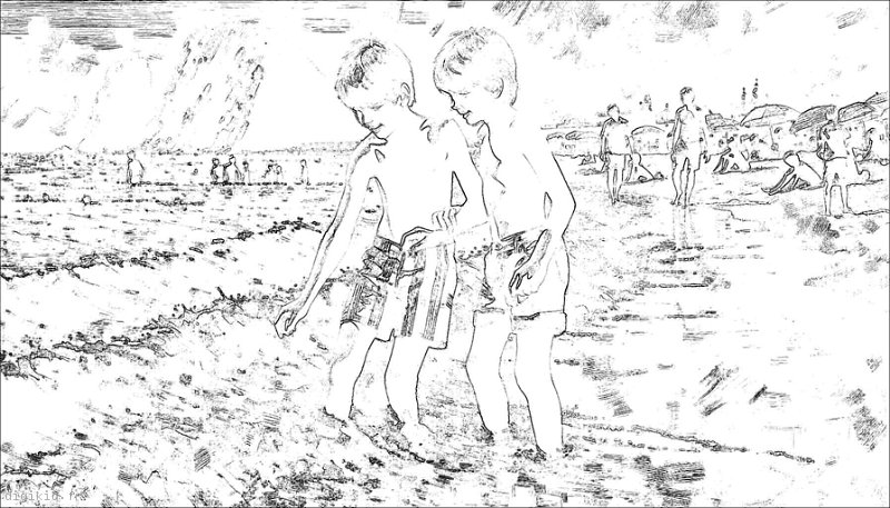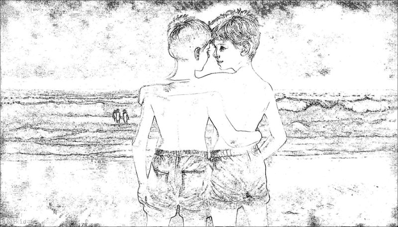 • Deux garçons à la mer