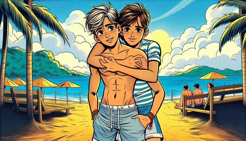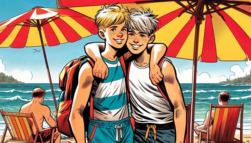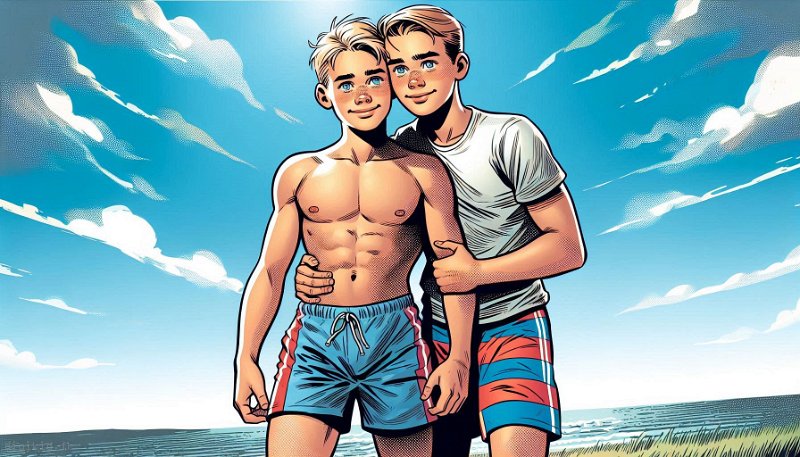 • Deux garçons à la mer