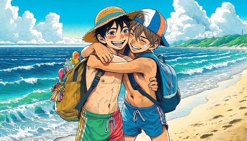• Deux amis à la mer