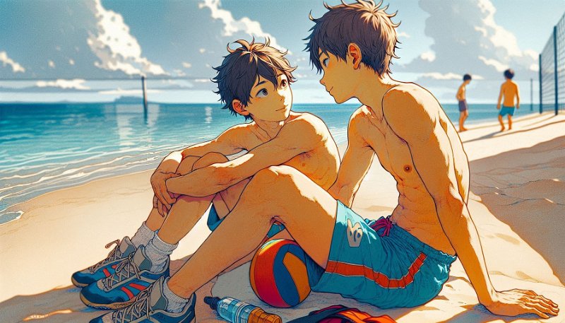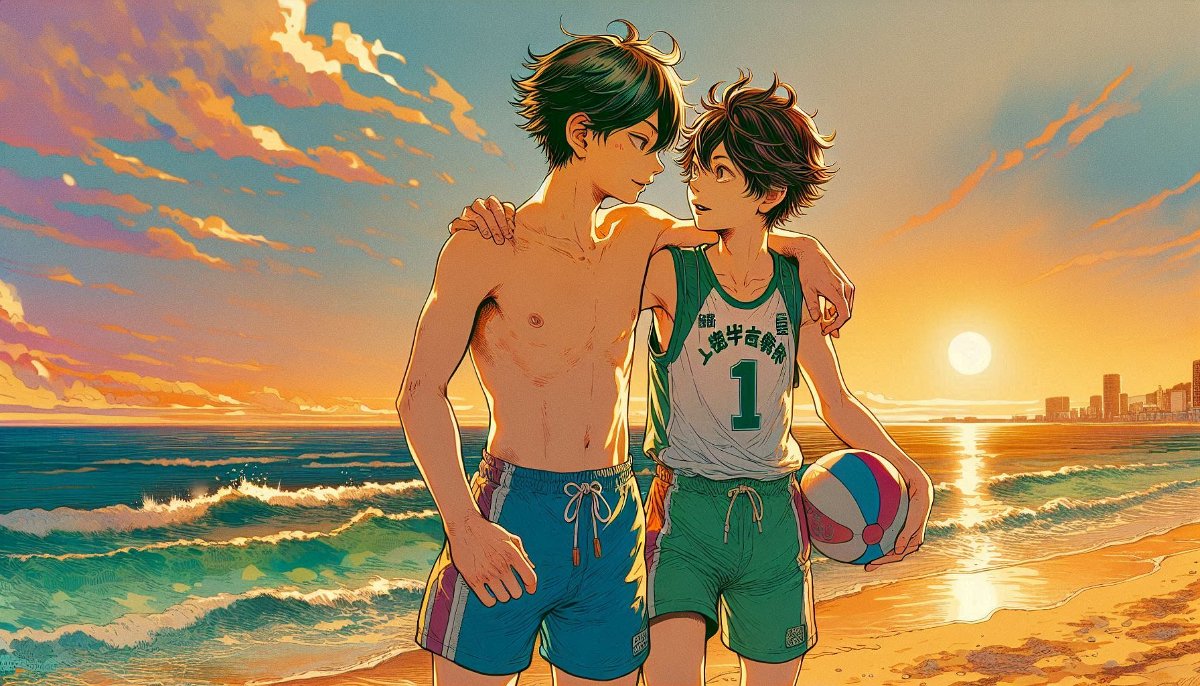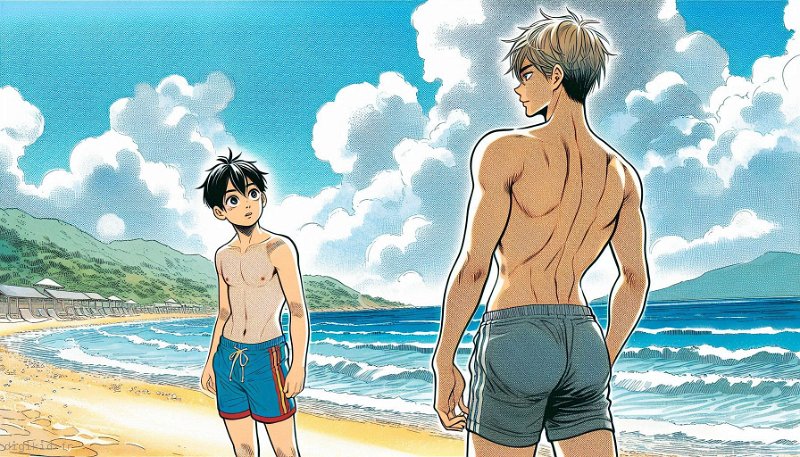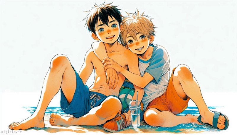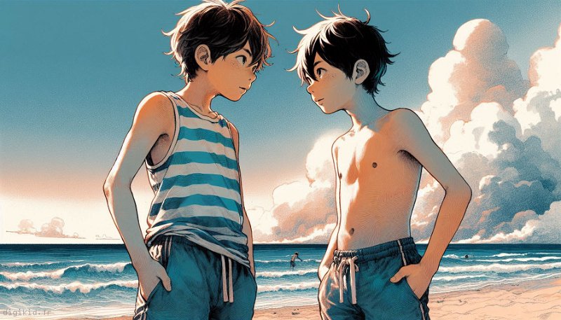 • Deux garçons à la mer