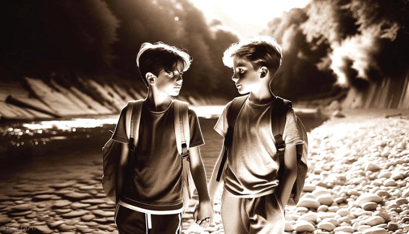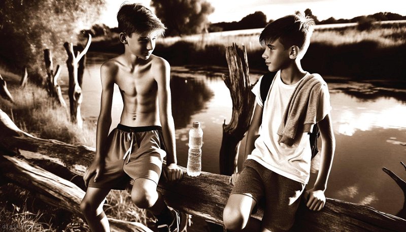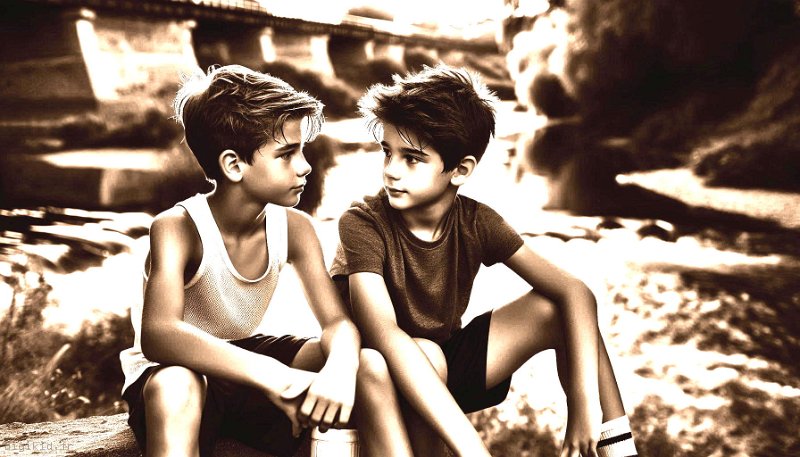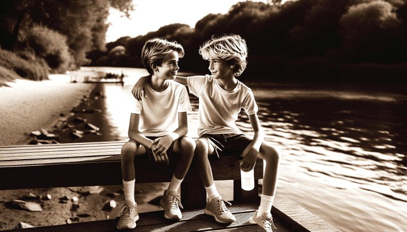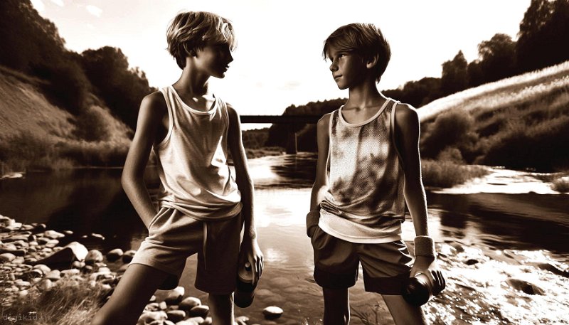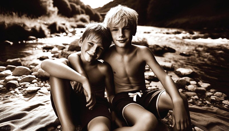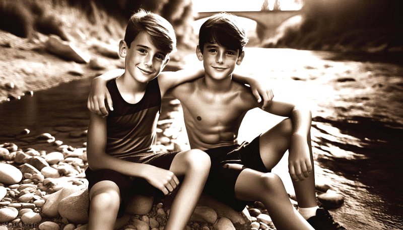 • Deux garçons à la mer